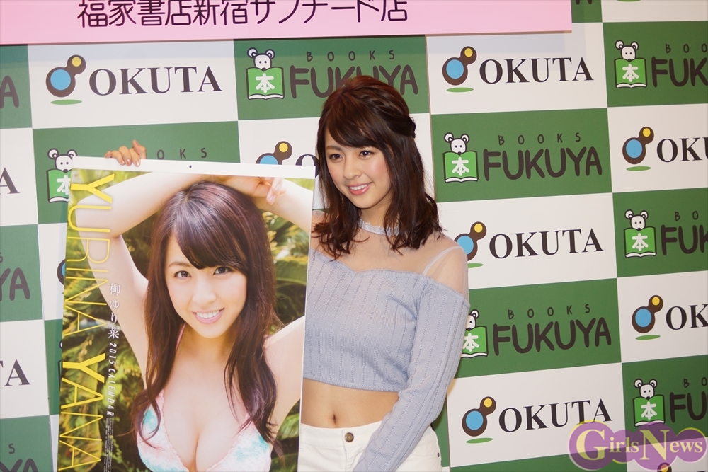 12月7日、グラビアアイドルの柳ゆり菜さんの2015年カレンダー(ハゴロモ)発売記念イベントが福家書店新宿サブナード店で行われた。