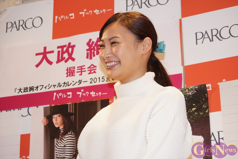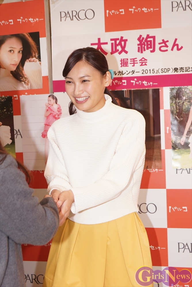 12月7日、モデルで女優の大政絢さんの初のカレンダー「大政絢オフィシャルカレンダー2015」(SDP)の発売を記念し、パルコブックセンター渋谷店にて握手会が行われた。