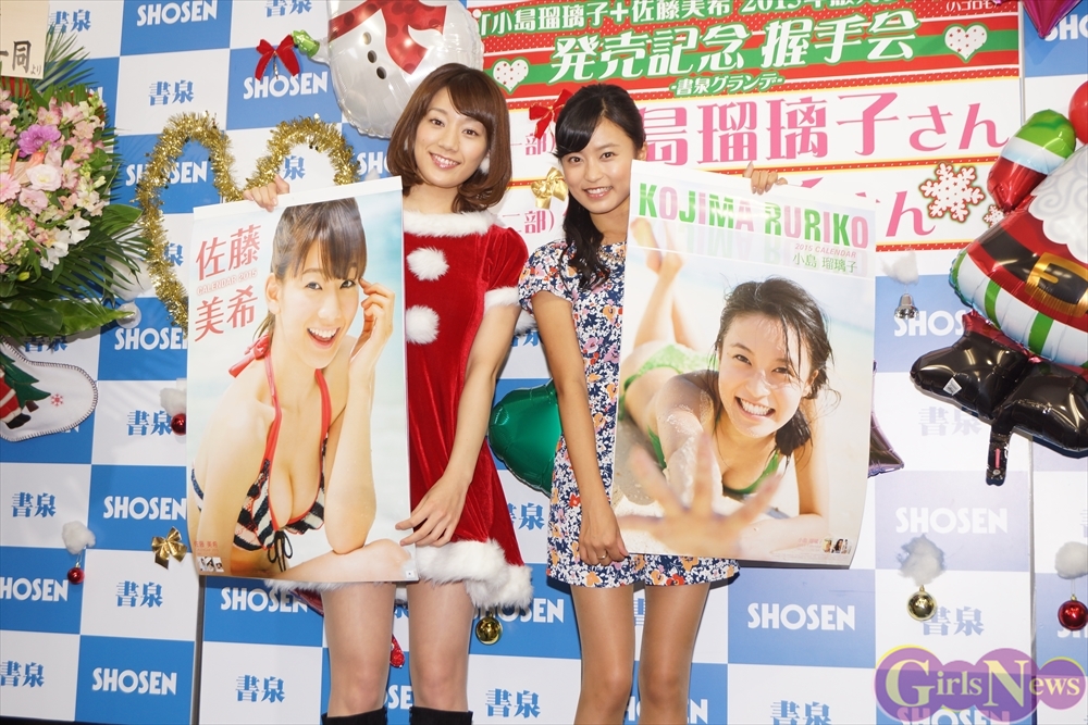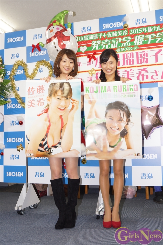 12月23日、タレントの小島瑠璃子さんと佐藤美希さんの2015年カレンダー(ハゴロモ)の発売記念イベントが書泉グランデで行われ、2人一緒に囲み取材を行った。