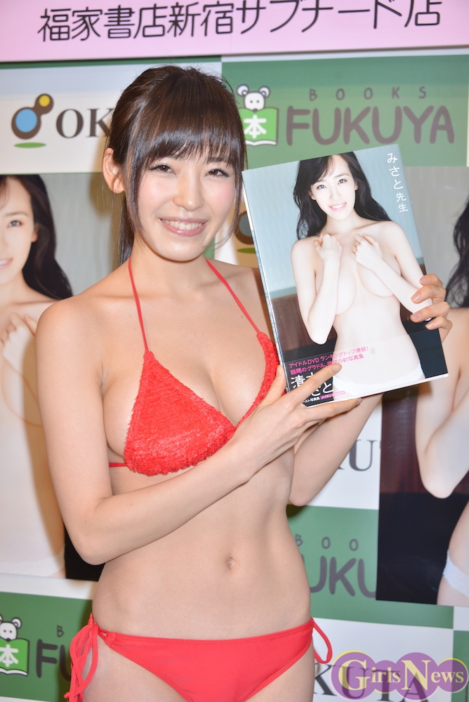 3月29日、DVD5作品が連続でAmazonのアイドルDVDランキング1位をとり続けているアイドルDVDの女王、清水みさとさんのファースト写真集『みさと先生』(ワニブックス)の発売を記念し、福家書店新宿サブナード店で発売記念イベントが行われた。