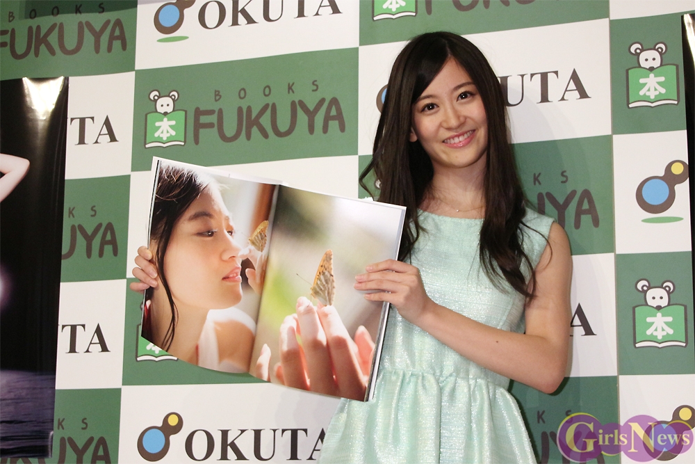 上西恵さんのお気に入りはチョウチョウの写っている写真で「窓にチョウチョウがいて、手を出したら止まってくれたんです。ホントに奇跡的な写真で感動しました。」とアピールした。さらに「私は虫が好きなんですよ。ひまわり畑などでも撮影したのですが、ハチや毛虫などがたくさんいて、他のメンバーではできなかったと思います。私だからこそできた写真集です。」と笑った。