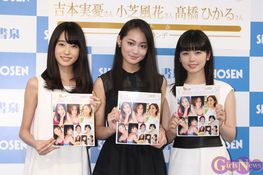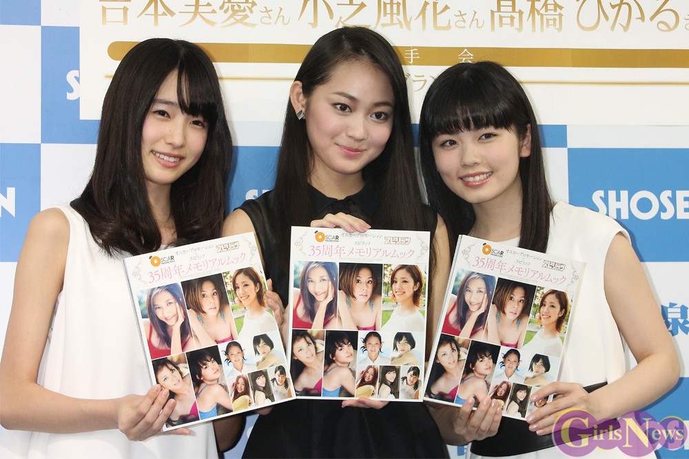 小芝風花、吉本実憂、高橋ひかるの3人が所属する事務所のタレントらと誌面を飾った「オスカープロモーション×スピリッツ35周年メモリアルムック」(小学館刊)の発売記念イベントが16日、東京・神保町の書泉グランデで行なわれた。