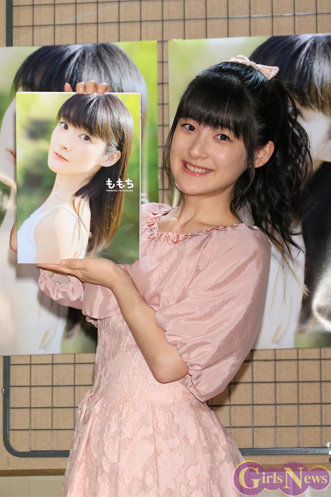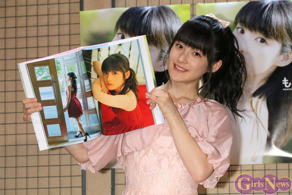 お気に入りの写真について「25歳の等身大の姿も収めようとドレッシーなドレスを着ました。今までカワイイ、カワイイって、耳にタコが出来るくらい言われてきたんですけど“最近、美しさも兼ね備えてきたんです”って主張しているのに、あまり信じてもらえないようなので、証拠として見せようと、特に美人に撮ってもらったのがこの写真です!どうですか!」と、ドヤ顔でアピールしたももちに、取材陣はあっけにとられて“シ~ン”とするばかり。「えっ?なんか想像と違うんですけど。ファンの方のほうがリアクションが上手ですよ」と、ももちはひとりジタンダを踏んだ。