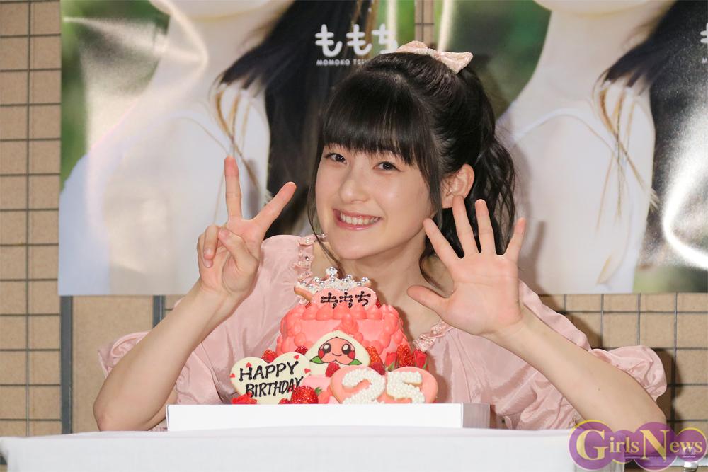 会見の冒頭ではバースデーケーキのサプライズに驚いてみせたももちだが、さすがに15年もアイドルを続けてきただけあって、カメラを向けられると即座に自分からケーキの角度を向け直すベテランぶりを発揮していた。