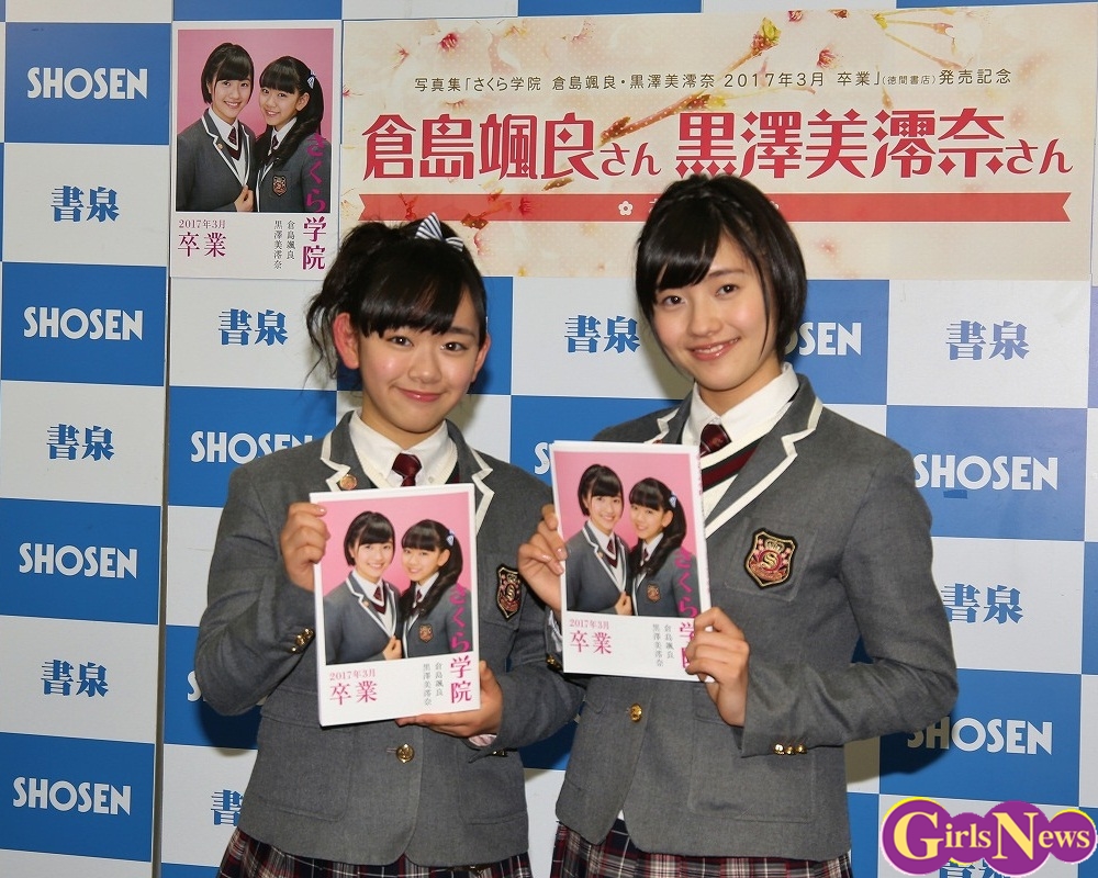 成長期限定ユニット「さくら学院」から先日卒業した倉島颯良(くらしま さら)さんと黒澤美澪奈(くろさわ みれな)さんが写真集『さくら学院 倉島颯良・黒澤美澪奈 2017年3月 卒業』の発売記念イベントを1日、書泉グランデで開催した。