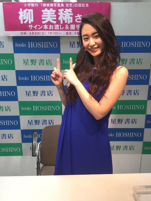 女優の柳美稀さんが8日、名古屋の星野書店近鉄パッセ店で1st写真集『空色』の発売イベントを行なった。