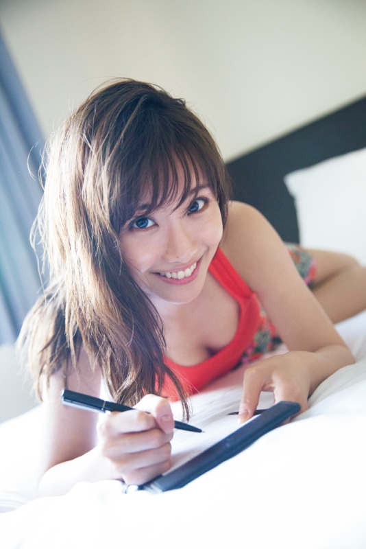 今号のスピリッツでは、その写真集の中から、グアムで撮影された厳選カットを先行公開している。グラビアの仕事が好きだという彼女が、イキイキしたした表情を見せている。