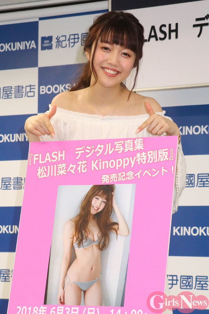 non-no専属モデルや、めざましテレビイマドキガールなどで活躍中の松川菜々花さんが、5月23日に先行発売されたデジタル写真集『シンモグラストーリー』の発売記念握手会を新宿・紀伊國屋書店本店で3日に開催した。