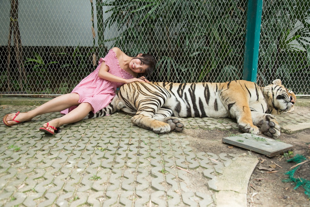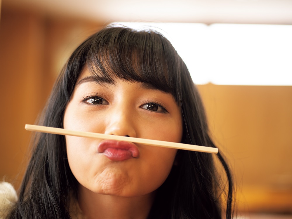 写真集は、黒木さんの希望を汲んで北海道のゲレンデで水着になったり、タイでは「食べられちゃうかと本当に怖かった」と思いながら、トラと一緒に撮影したりと、思い出の詰まった1冊になったという。「見ていて飽きないように、大人っぽい表情だったり、いろんな表情を意識しましたが、楽しむことをイチバンに心がけました」と振り返った。お気に入りは鼻と口の間に箸を挟んだ写真。「普段しないポーズだから、見てドキドキしちゃうかも。ちょっとかわい子ぶりました」と笑った。