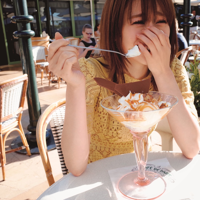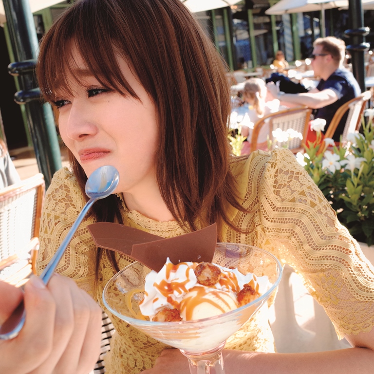 今回、解禁されたのは、そんな守屋さんのストイックなボディメイクが生み出した、彼女の“涙”を収めた貴重なカット。現地入りしてからも撮影に向けて、食事に気を遣い、パンやスイーツなど糖質の高い食品は一切口にしなかったという。ロケ2日目、『カフェドパリ』での撮影の際、食べているシーン用に出された大きなパフェを一口ほうばった瞬間、彼女の目から涙が! それまでの我慢があったからこそ、その一口は最高の味となったのかもしれない。