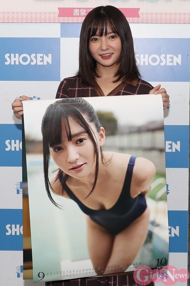 カレンダーについて「3月4月は爽やかな制服姿ですが、7月8月はスッポンポンでプールに入っています。カレンダーの表紙は写真集の表紙候補だったのですがこちらで採用となりました。お家に飾りにくいと思いますので、一人で楽しめるところに飾ってください。自分のお部屋かトイレとかいいかも。リビングに飾るには刺激的だと思います。我が家では冷蔵庫の隣に飾ります」と語った。