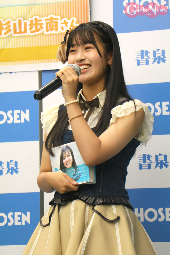 杉山さんは「私はちょー全力で走っているページです。すごい汗をかいてますけど、楽しい撮影でした。あとどうしても紹介したいのが、髙畑結希さんが水鉄砲で遊んでいる写真です。私が水鉄砲で今年遊べなかったので、どうしても今年中に結希さんと水鉄砲で遊びたいんです。水を掛け合いっこしたい。これから真冬でも大歓迎です」と、それぞれ紹介した。