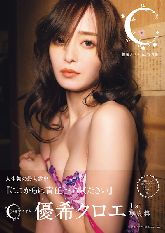 アイドルグループ「純情のアフィリア」の人気メンバー・優希クロエさんが1st写真集『C』(秋田書店)を22日に発売。その表紙ビジュアルが公開された。“人生初の最大露出!”のキャッチフレーズが衝撃的な本作、憂いを含んだ眼差しが印象的な表紙となっている。