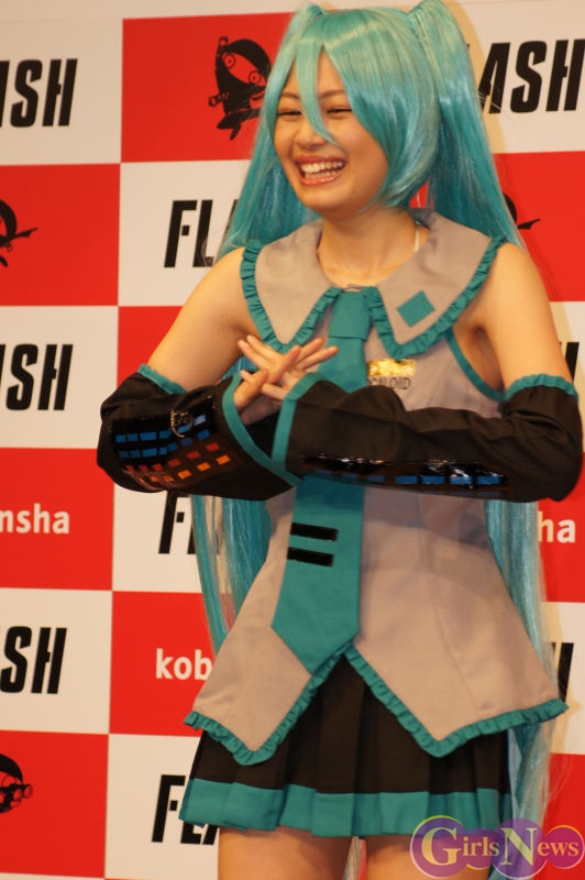 この日は、ミスFLASH2011グランプリの黒田有彩・斎藤眞利奈・鈴木ふみ奈・仁藤みさきも駆け付け、ミスFLASH2012の3人を祝福。この発表記者会見では恒例の特技の披露も披露した。