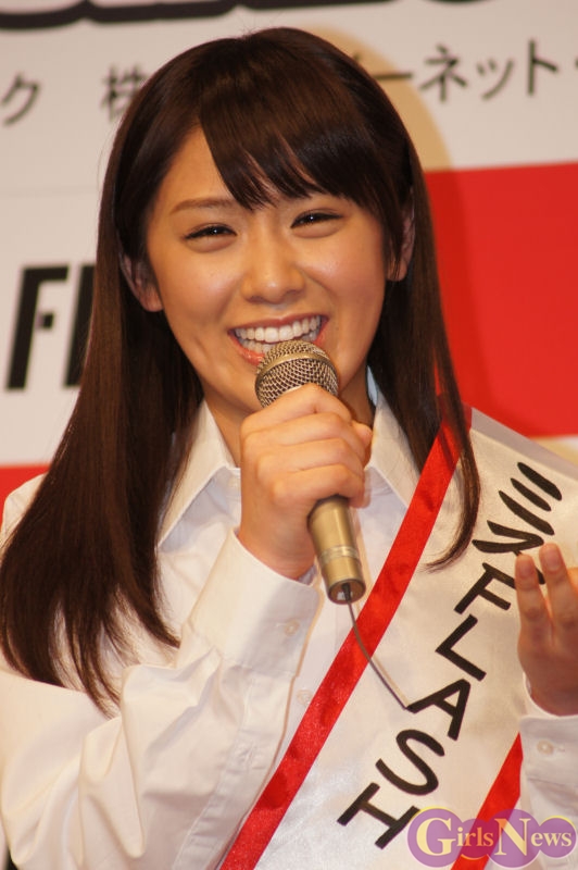 小松美咲さんは「グランプリに選ばれてびっくりしました。グランプリをいただけたことにすごく光栄に思っています。ミスFLASH2012の3人でFLASHの紙面を楽しく(撮影)できたらなと思います。」