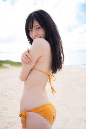 白い砂浜で美尻を披露する姿や、黒い水着での大人っぽい表情など、写真集への期待が膨らむカットとなっている。