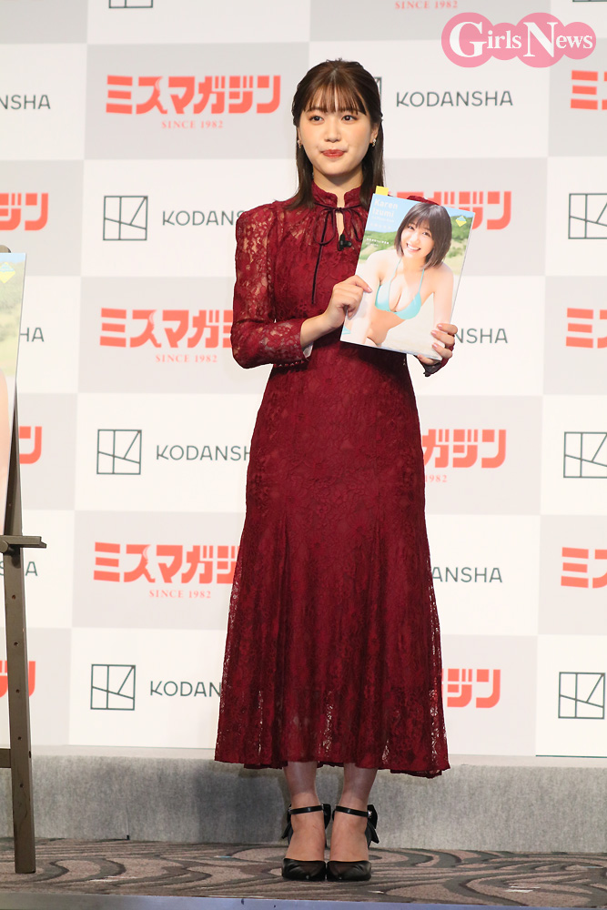 写真集の見どころについて「ありのままの私がすごく多いので、素の私をたくさん感じて楽しんでもらえたら嬉しい」と語り、「私が選んだ衣装があって、この写真集の中でいちばん顔が盛れたのでお気に入りです」とアピールした。