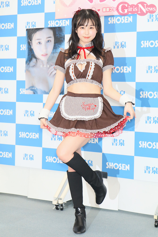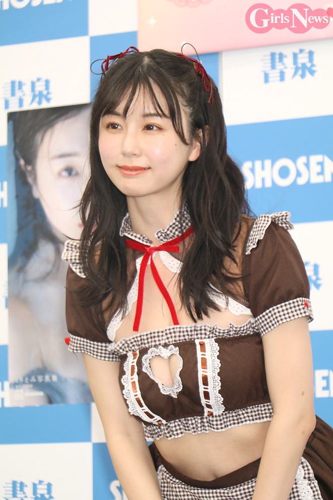 お気に入りの写真について「ベストセラーになった田中みな実さんの写真集が、女性から見てもすごくよい印象で、今回はすごく参考にさせていただきました。その表紙と私の写真集の1枚が雰囲気が似てる気がしたので、お気に入りの1枚に選びました」と紹介した。