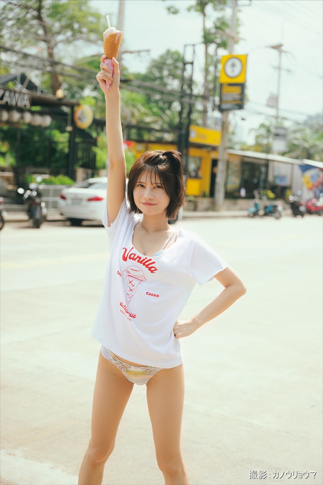 お気に入りのカットについては、雑貨街でのセクシーな衣装のカットと、タイのプールでの撮影を挙げた。プールでの撮影では、水面でポーズを取るのに苦労し、「体を浮かせるためにプールのはしごを使って支えながら撮影しました」と、イラスト付きで撮影秘話を明かした。