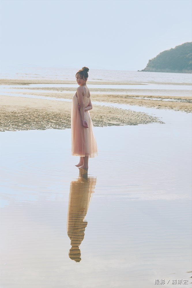 撮影は全編、自身の故郷である香川県で行われた。3月のロケは4日間とも雨で、大寒波にも見舞われたという。「カメラマンさんと一緒に極寒の海やプールに入ったりもしました。撮影後にスタッフさんが抱きしめてくれて、みんなで寒さを乗り越えて作った一冊です」と過酷ながらもチーム一丸となった撮影を振り返った。お気に入りの一枚には、”日本のウユニ塩湖”と称される父母ヶ浜(ちちぶがはま)での幻想的なショットを挙げ、「この写真集を見て、今年の夏は香川に行こうと思ってもらえたら嬉しいです」と故郷への愛をにじませた。