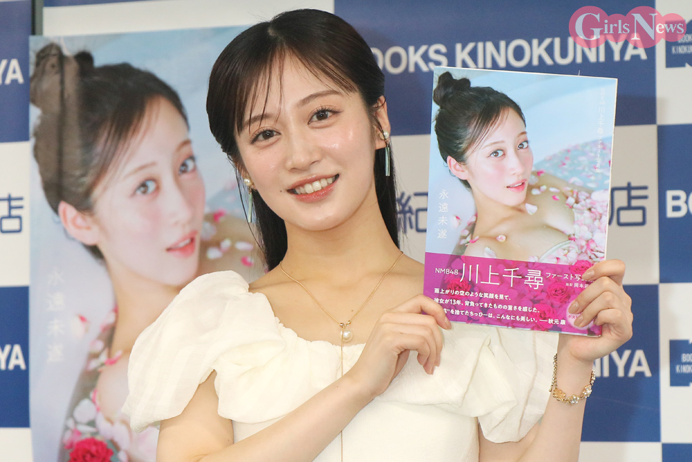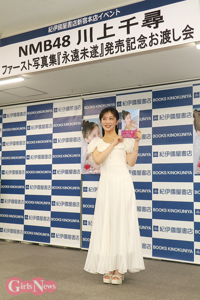 NMB48の川上千尋さんが1日、自身のファースト写真集『永遠未遂』(徳間書店)の発売記念イベントを紀伊國屋書店新宿本店で開催した。