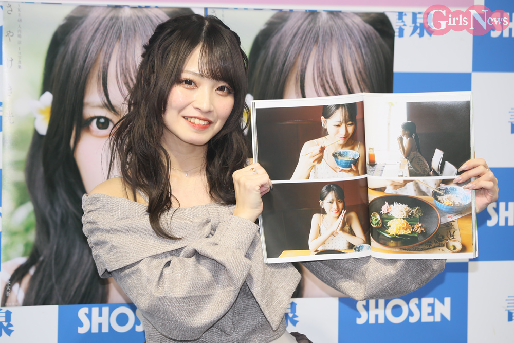 SKE48の入内嶋涼が27日、1st写真集『さやけき光』(扶桑社)の発売記念イベントを神田神保町・書泉グランデにて開催した。