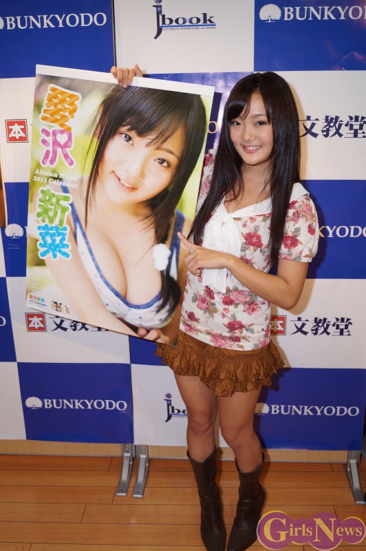 10月14日、現役女子高生グラビアアイドルの愛沢新菜(あいざわ にいな)さんの2013年カレンダー(ハゴロモ)の発売を記念し、文教堂書店渋谷店にて握手会が行われた。