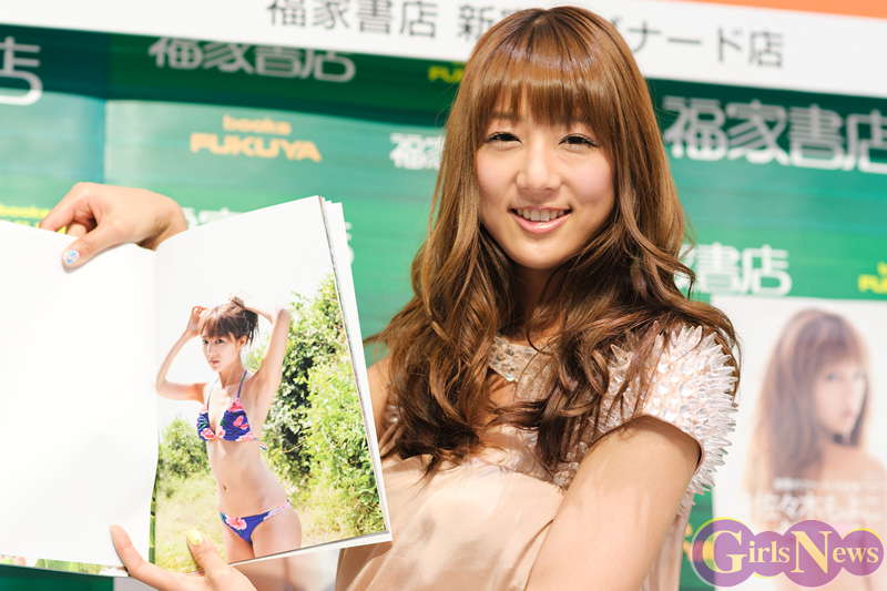 5月18日、「アデランス」「モバゲー」のCMで話題のタレントの佐々木もよこ(27)がファースト写真集「Juicy HIPs」(集英社)の発売記念イベントが福屋書店 新宿サブナード店で行われた。
