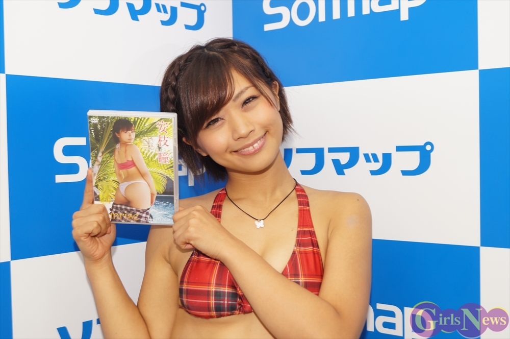 9月16日、人気レースクイーン 安枝瞳さんの3枚目のイメージDVD「Sunrise」(イーネット・フロンティア)の発売を記念し、秋葉原のソフマップアミューズメント館でイベントが行われた。