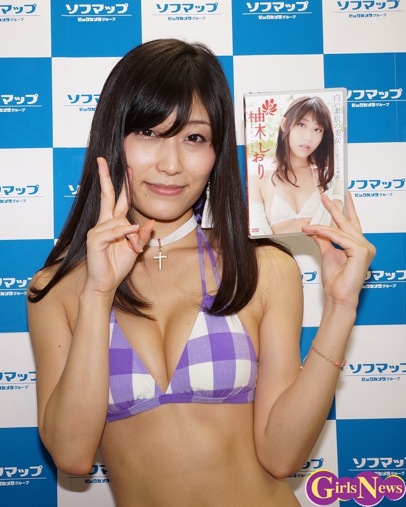 9月15日、グラビアアイドルの柚木しおりさんの7枚目のDVD「白い素肌の美女~下宿先の若奥様~」(M.B.D.メディアブランド)の発売を記念し、秋葉原のソフマップモバイル館でイベントが行われた。