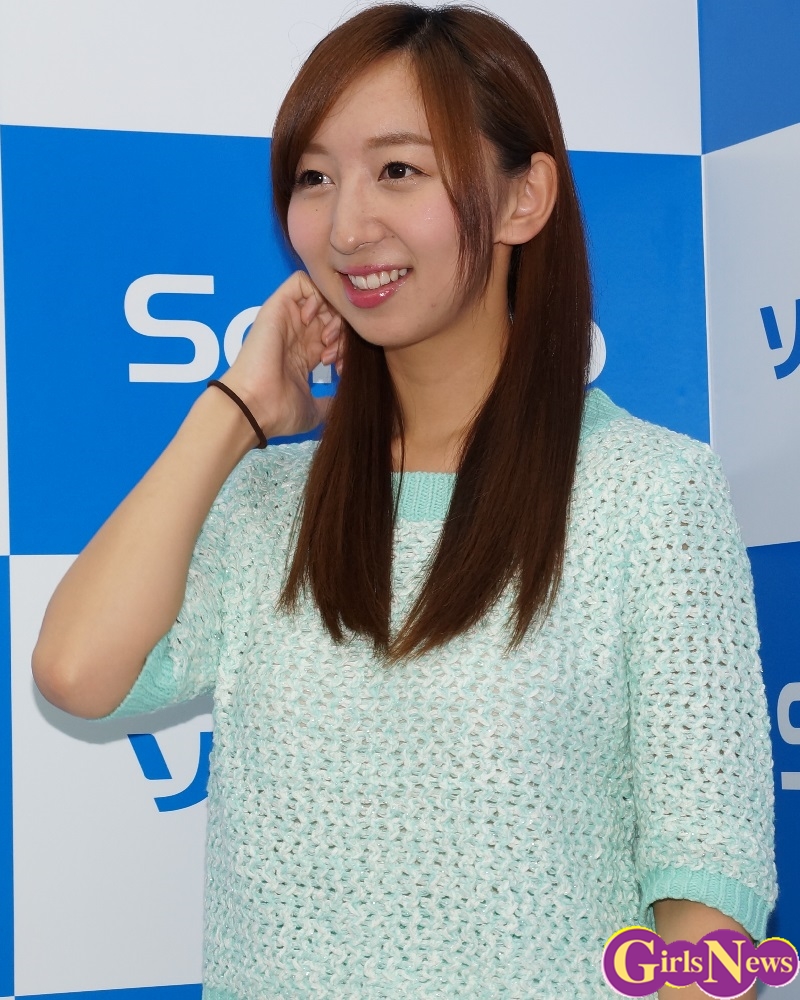 DVDの内容について質問されると「南国で撮ったので元気で爽やかです。自分では2年前と変わっていない気がします。足につけてグルグルとまわす器具があるのですが、ずっとそれで遊んでいました。セクシーなのは外でお花が胸に乗っているシーンは光が差し込んでいるところできれいに撮ってもらいました。」と紹介。