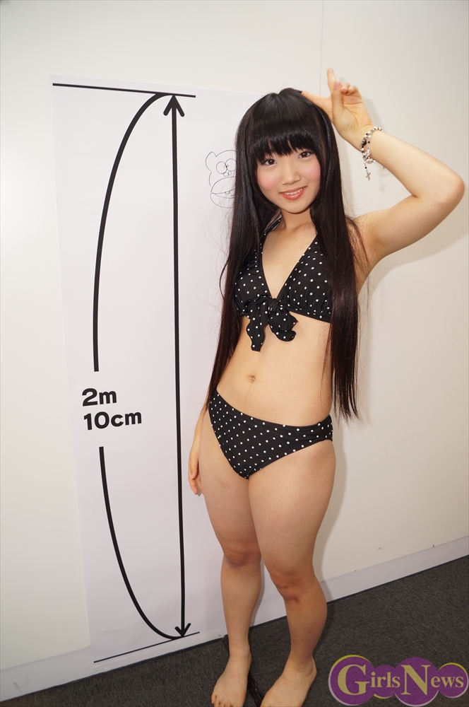 おススメのシーンについて「個人的にメイドのシーンがおススメです。メイドのシーンは飴を舐めてます。それとプールが楽しかった! あとは気に入ってる衣装はメイドとスク水がお気に入りです。水着の中でスク水が一番お気に入りです。」とニッコリ。