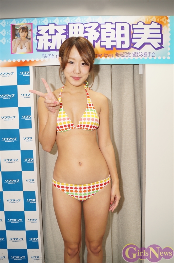 12月7日、グラビアアイドルの森野朝美さんの7枚目のDVD「みすど mis*dol sweet summer love」(M.B.D. メディアブランド)の発売を記念し、秋葉原のソフマップモバイル館でイベントが行われた。