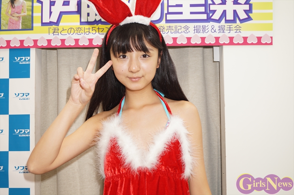 12月21日、現役女子中学生グラビアアイドルの伊藤万里菜さんの8枚目のDVD「君との恋は5センチメートル」(スパイスビジュアル)の発売を記念し、秋葉原のソフマップモバイル館でイベントが行われた。