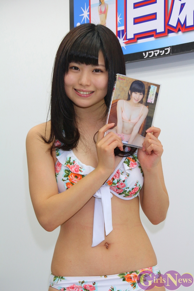 百瀬美鈴さんは慣れないインタビューに緊張しながらも、「頑張って勝ち抜いてやっとグランプリになれた記念のDVDです。沢山の人に見て欲しい!」と喜びを露わにした。