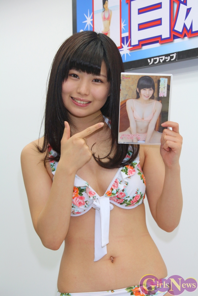 12月22日、 アイドルグループ『Fine Color』のメンバーでもある百瀬美鈴さんの新作DVD『ミスヤングチャンピオン2013』(イーネット・フロンティア)の発売を記念したイベントが、秋葉原・ソフマップアミューズメント館で行われた。