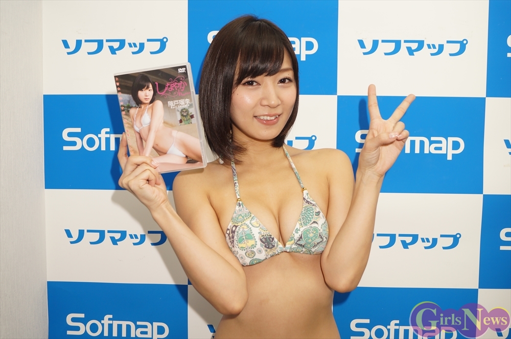 1月18日、グラビアアイドルの階戸瑠李さんの最新DVD「しなやかに…」(晋遊舎)の発売を記念し、秋葉原のソフマップアミューズメント館にてイベントが行われた。