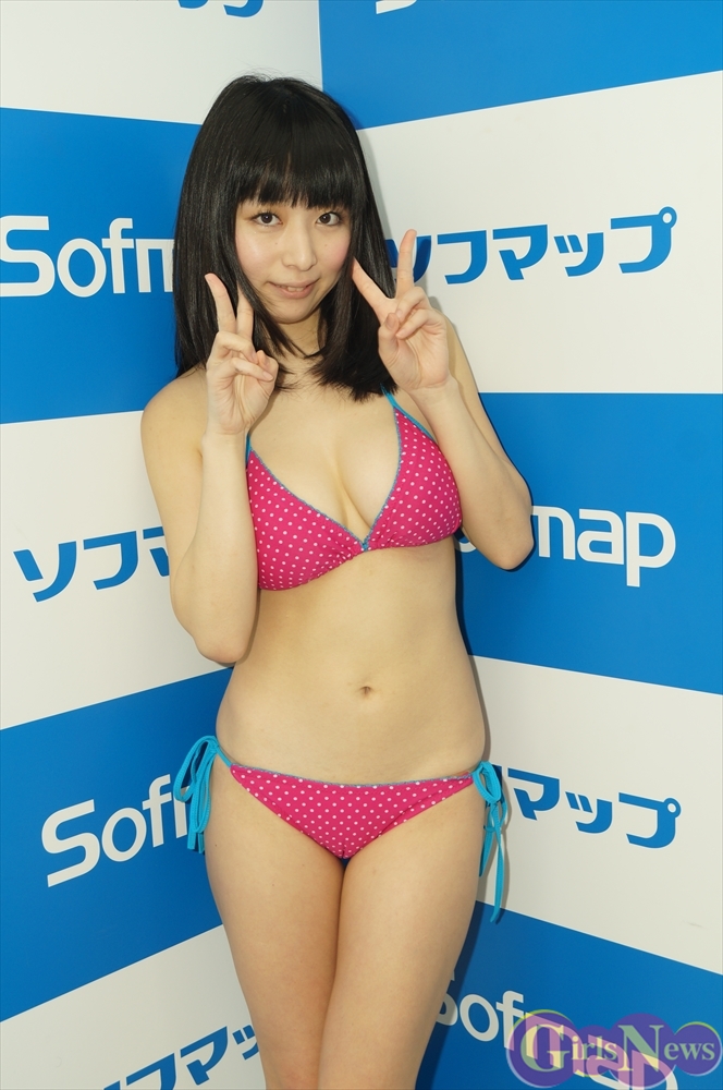 おススメのシーンについて「黒い水着のシーンは今までよりちょっとセクシーな感じになってます。ピンクのカーディガンを着てるシーンはすごいギリギリでおススメです。ホント見えそうです。」とアピール。