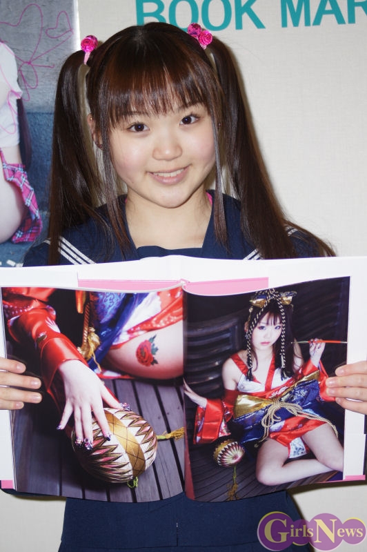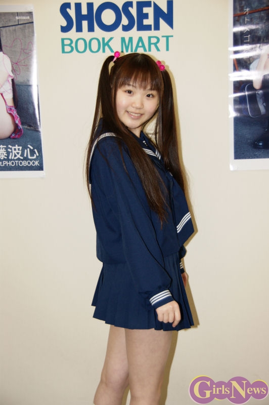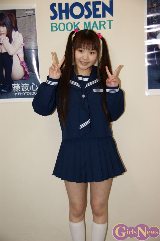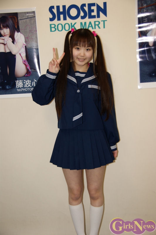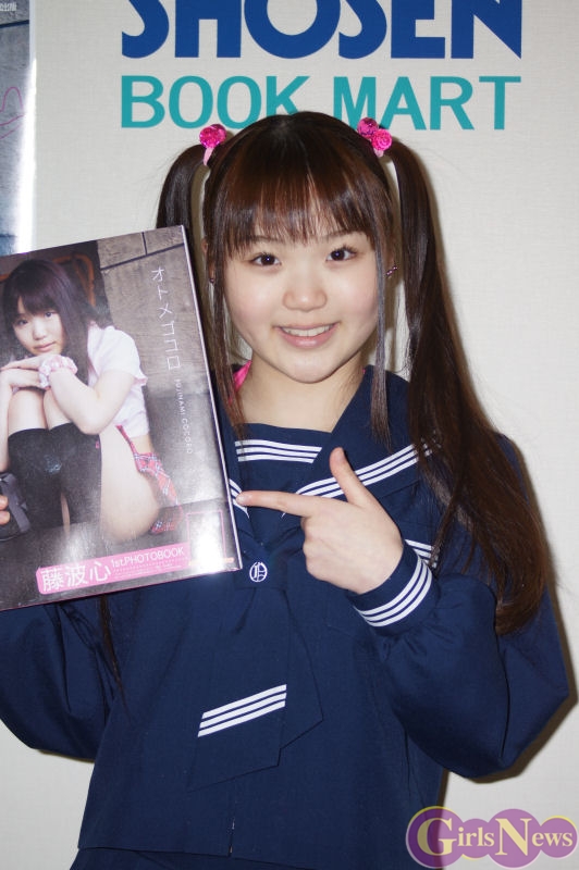 1月30日、へそピアスアイドルとして一躍注目の的になっている現役中学生グラビアアイドルの藤波心(ふじなみ こころ)さんの1st写真集「オトメゴコロ」(彩文館出版)の発売を記念し、都内でサイン会が行われた。