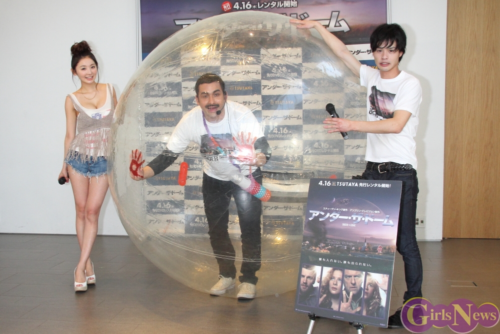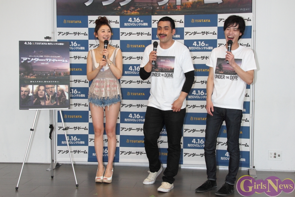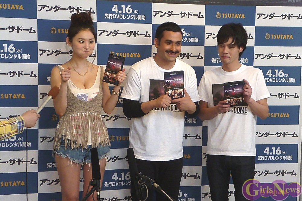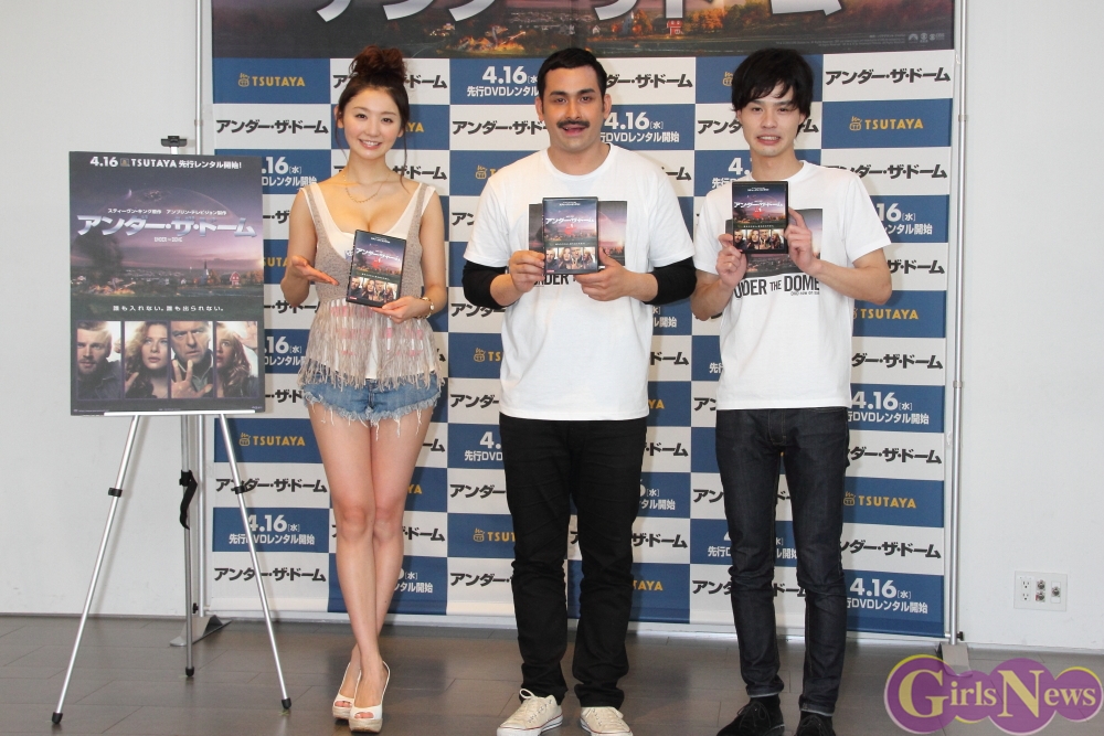 4月15日、海外ドラマ「アンダー・ザ・ドーム」のTSUTAYA先行DVDレンタルを記念した「ヒット祈願!ドーム体験イベント」が代官山 T-SITE GARDENで行われ、グラビアアイドル おのののかさんとお笑いコンビ・デニスの植野行雄さんと松下宜夫さんが登場した。