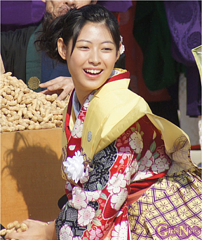 2月3日、成田山不動尊で行われた節分祭に、NHK朝の連続テレビ小説「てっぱん」でヒロインを務める女優の瀧本美織(たきもと みおり)さんが特別年男として参加、落花生による豆まき式を行った。