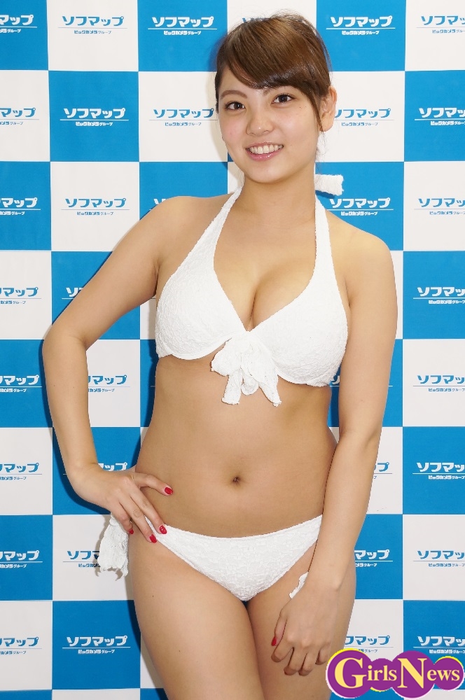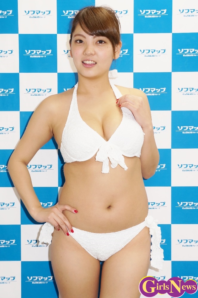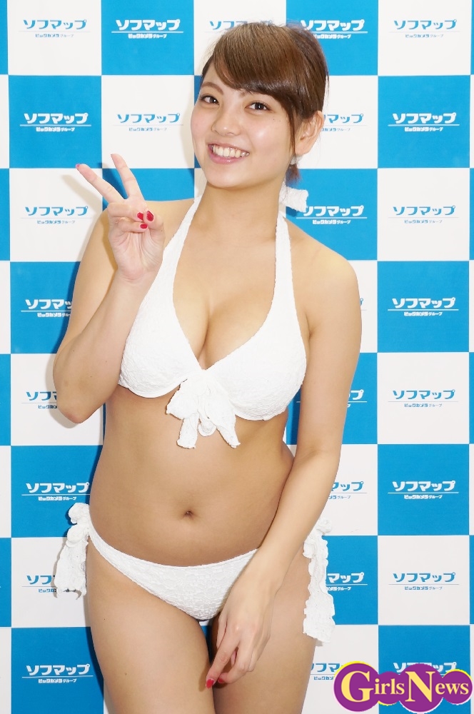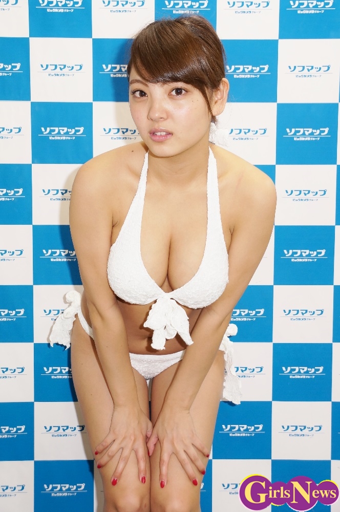 DVDの内容について質問されると「今回はしっとりしたシーンが多かったので、今までのDVDよりもセクシーになっています。彼氏と初めて温泉旅行へ行った設定なので、演技ではなくありのままの私で初々しさが出たと思います。そして今までのDVDの中でいちばん胸を揺らしています。」と紹介。