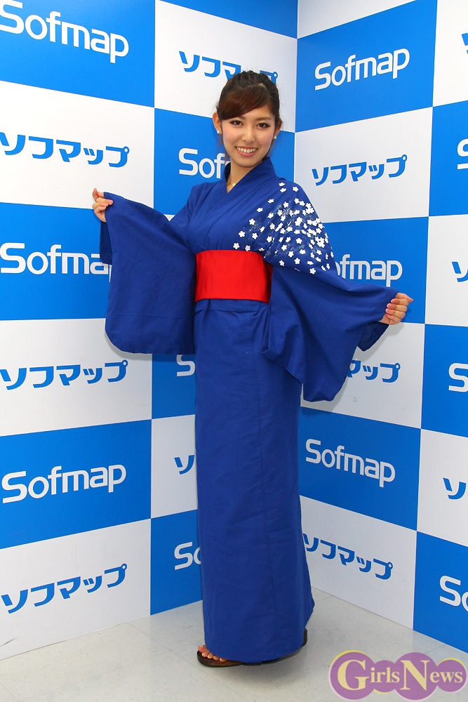 この後の予定は、ワールドカップ応援ツアーに同行してブラジルに向かうそうで、「この浴衣を着て応援に行きます。FC東京の番組でレポーターをしているので、特に森重真人選手や権田修一選手の活躍に期待しています。」と意気込んでいた。