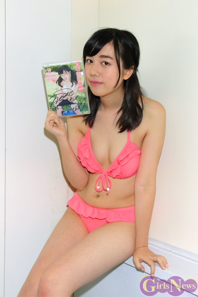 初めてのDVDに挑戦した感想を「最初は内容が想像できなくて、先輩の作品を見せてもらってこういうものなのかぁって分かりました。グラビアはやったことがなかったのですが、自分のやりたい女優業に生かせるかなと思って、やってみようと思いました。」と話した。