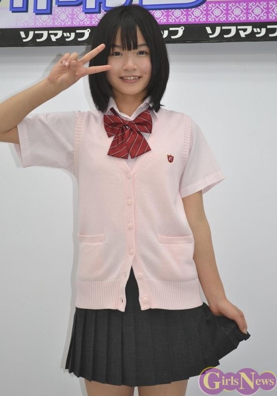 新高校1年生になった晴香さん。「DVDの点数は中学生最後の作品なので100点です。中学の思い出はいろんな仕事が出来て学業も充実しました。高校ではもっと充実させたい。もっともっとイベントを開きたいです」と力強く宣言。