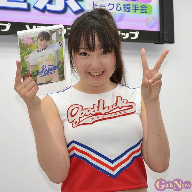 4月29日、現役中学生グラビアアイドルの相川聖奈さんが新作DVD「みすどmis*dol」(メディアブランド)発売記念イベントを秋葉原で行った。
