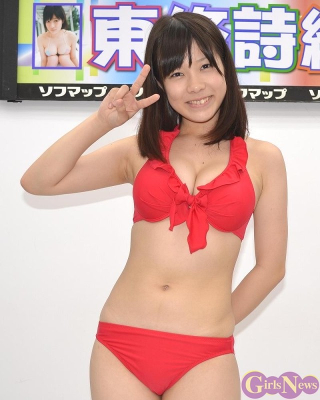6月26日、高校生グラビアアイドルの東條詩織さんが新作DVD「NEW KISS」(スパイスビジュアル)発売記念イベントを秋葉原で行った。