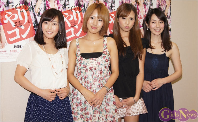 8月16日、劇場版「やりすぎコンパニオンとアタシ物語」の完成報告会見が都内で行われ、出演したグラビアアイドルの守永真彩・丸高愛実・伊藤えみ・谷桃子の4人が出席した。