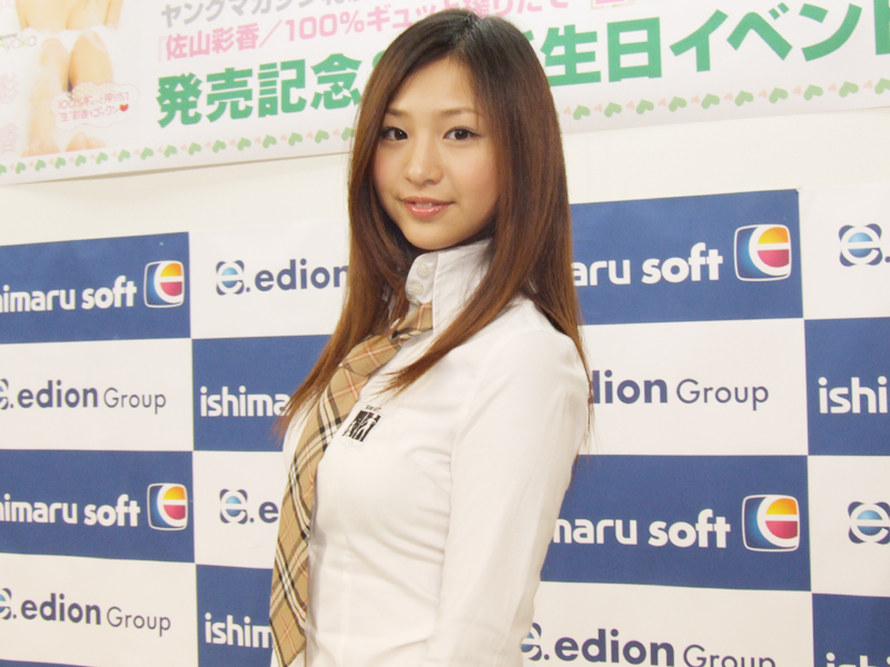 女子高生グラドルの佐山彩香(17)ちゃんが5月23日に東京・秋葉原のソフマップ・アミューズメント館でDVD『100%ギュッと搾りたて“生”彩香をゴックン』の発売記念イベントを行った。
