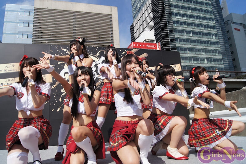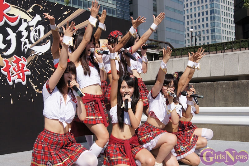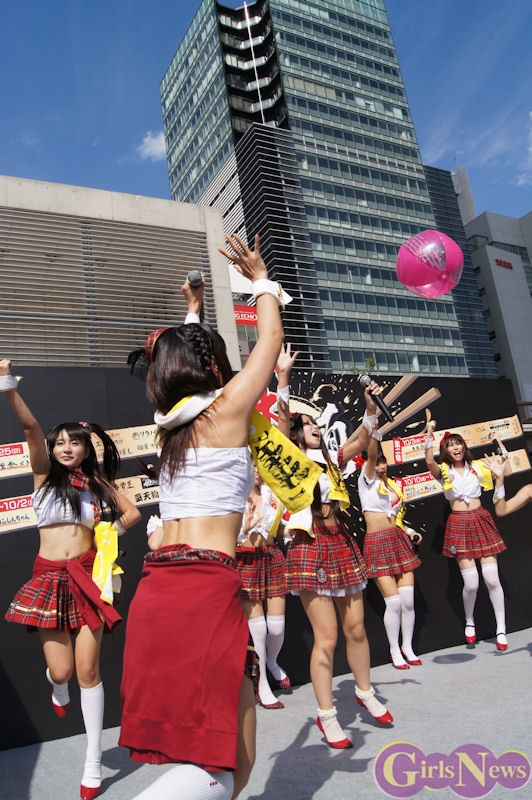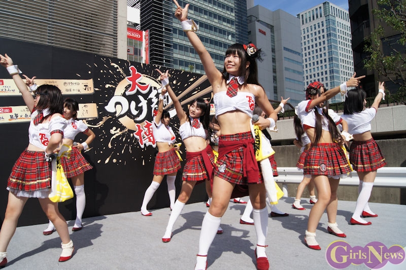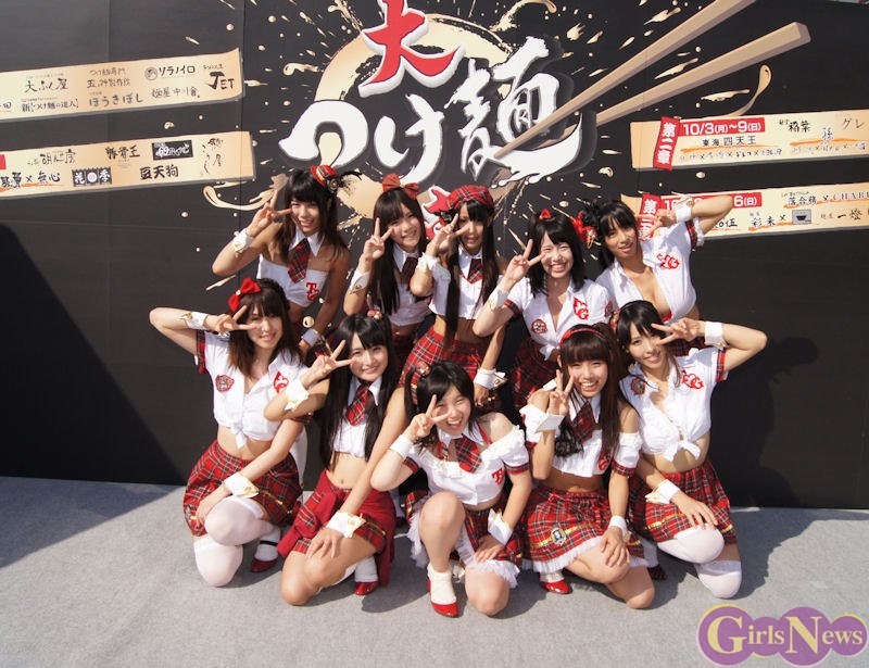 9月24日、浜松町駅前特設会場で行われている世界最大の「大つけ麺博」をPRするアイドルグループ「トッピング☆ガールズ2.0」が登場し秋晴れの青空の下、新曲「つけ麺☆エクスタシー」を披露した。